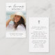Keep the memory of a loved one close with this custom personalized prayer card featuring one treasured photo, the sentiment IN LOVING MEMORY, name and dates on the front and an editable prayer accented with a simple cross on the back. With its simple yet elegant black and white design and elegant script typography, it makes a meaningful keepsake to share at a funeral, memorial service or Celebration of Life and offers comfort and a lasting tribute for family and friends. Its small and portable size of 3.5x2" (wallet-sized) makes it convenient for loved ones to carry it with them as a reminder of your loved one’s life and spirit. Personalization makes each card unique.