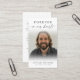 Keep the memory of a loved one close with this custom personalized prayer card featuring one cherished photo, the title FOREVER IN OUR HEARTS, name and dates and an editable heartfelt remembrance message. With its simple yet elegant black and white design and modern script typography, it makes a meaningful keepsake to share at a Celebration of Life, funeral or memorial service and offers family and friends to carry it with them as a reminder of your loved one’s life and spirit. Personalization makes each card unique.