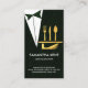 Une texture textile vert foncé est accentuée par un design créatif de tuxedo avec une couverts d'or servant assiette. Les coordonnées de la carte sont situées à proximité de la base, avec votre nom prestigieux en haut, suivi du titre du poste et des coordonnées. Au-dessus, on utilise le même thème textile. En haut se trouve un logo "couverts" or que vous pouvez utiliser suivi des coordonnées et deux options de slogan pour faire connaître vos services. Une carte professionnelle créative pour les professionnels de la restauration. #restaurant #nourriture #restauration #cuisine #chef #restauration #serveur #restaurant #serveur #maître #majordome #service des majordomes #zazzlemade