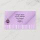 Carte de visite élégamment conçu pour un gâteau décorant affaires, boulangerie, boulangerie, maison...Câteau violet sur un arrière - plan à rayures mauve douce. Une bordure de rayures violettes modernes accentue le fond. Customisez avec vos informations comme vous le souhaitez.