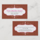 Cartes de visite de la cuisson au chocolat ou des chocolatiers. Des rayures chocolatées avec des touches de tourbillons rose et blanc, personnalisez avec votre propre bonbon, chocolat ou pâtisserie nom d'entreprise et coordonnées. Conception originale par www.mylittleeden.com