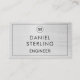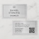 Un design carte de visite élégant et professionnel adapté aux ingénieurs et aux professionnels techniques. Doté d'un look métallique argenté brossé avec des initiales monographiques audacieuses, une typographie propre et un code QR intégré, ce design allie sophistication et fonction. Idéal pour les ingénieurs qui souhaitent présenter une identité de marque polie tout en donnant aux clients un accès instantané aux portefeuilles, aux détails du projet ou aux coordonnées.