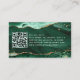 Carte de visite professionnel moderne et élégant avec code QR avec géode agate vert, veines de parties scintillant en marbre et faux or et accents pétillants personnalisés avec des initiales monogrammes de style signature fantaisie avec des swashes. MODIFICATIONS : Modifiez le style, la couleur, la taille et le placement de la police de texte dans EDIT. ASSISTANCE : Pour obtenir de l'aide sur la modification ou la personnalisation de la conception ou pour coordonner des éléments, contactez le concepteur AVANT LA COMMANDE via l'onglet MESSAGE Conversation Zazzle ou envoyez un courriel à makeitaboutyoustore@gmail.com.