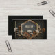 Define your brand with sophisticated midnight luxury and high-impact geometry using this captivating business card. The design centers on a bold, deep black background that provides maximum contrast for the opulent central frame. A striking triple-layered gold hexagon frame defines the space for your information, surrounded by crisp, clean lines that emphasize structure and modernity. The frame is beautifully accented by stylized botanical elements that anchor the bottom: delicate white floral clusters and finely drawn copper-gold leaves and sprigs in a warm autumnal palette. The entire aesthetic is a perfect blend of modern minimalist architecture and rich, detailed botanical luxury, creating an instantly memorable and highly classy brand statement. This business card is ideally suited for a high-end jewelry artisan specializing in geometric or autumnal-themed metallic pieces, a luxury boutique owner promoting an exclusive, dark romantic collection, or a modern wedding stationer specializing in gold and black invitations. It would also perfectly suit a corporate executive who requires a distinctive, prestigious contact card, or a florist emphasizing dramatic contrast and unique presentation. The card's captivating combination of midnight dark tones and intricate metallic gold detailing ensures it is versatile for any classy announcement, a premium product packaging enclosure, or an elegant membership loyalty card.