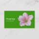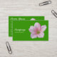 Un carte de visite avec un motif de photo en géranium rose. Nom d'entreprise etc sur le devant avec d'autres détails sur le verso avec le même motif et le même style.