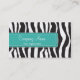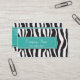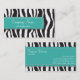 Ces cartes de visite professionnels et à la mode sont parfaits pour vos affaires ! Ils comportent un arrière - plan sauvage noir et blanc de rayures de zèbre. Sur l'arrière - plan est une barre turquoise avec la pièce pour votre raison sociale, tagline, votre nom, fonction et détails de contact. Conception très mignonne pour des salons de coiffure, un coiffeur, des boutiques, les dessinateurs d'intérieurs, les maquilleurs, la mode et beaucoup plus !