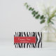 Ces cartes de visite professionnels et à la mode sont parfaits pour vos affaires ! Ils comportent un arrière - plan sauvage noir et blanc de rayures de zèbre. Sur l'arrière - plan est une barre rouge avec la pièce pour votre raison sociale, tagline, votre nom, fonction et détails de contact. Conception très mignonne pour des salons de coiffure, un coiffeur, des boutiques, les dessinateurs d'intérieurs, les maquilleurs, la mode et beaucoup plus !