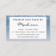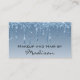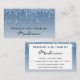 Ce carte de visite chic, girly et glam a des gouttes de parties scintillant bleu scintillant de part et d'autre. Personnalisez facilement ce carte de visite en ajoutant votre nom et vos coordonnées. Cliquez sur "customiser plus loin" pour modifier la couleur du texte et le style et la taille de la police. Ce carte de visite est parfait pour un maquilleur, un coiffeur, un technicien en ongles ou un propriétaire de salon.