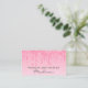 Ce carte de visite chic, girly et glam a des gouttes de parties scintillant rose rose brillant des deux côtés. Personnalisez facilement ce carte de visite en ajoutant votre nom et vos coordonnées. Cliquez sur "customiser plus loin" pour modifier la couleur du texte et le style et la taille de la police. Ce carte de visite est parfait pour un maquilleur, un coiffeur, un technicien en ongles ou un propriétaire de salon.