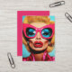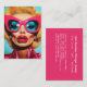 Un portrait surprenant et de haute couture d'une diva glamour avec des cheveux blonds volumineux, des lunettes de soleil roses et chaudes, des lèvres rouges audacieuses et un pré bleu électrique. Le look est féroce, rétro, et sans s'excuser fabuleux — un rêve pop-art aux couleurs vives.