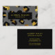Modern, girly animalier networking card featuring digital image of lepard print in gray, black and glitter gold . Black stripe overlay. Great for beauty, fashion , entertainment and event professionals.