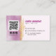 Faites une déclaration avec ce carte de visite glamour. L'arrière - plan d'aquarelle rose douce aux accents dorés crée une esthétique luxueuse et féminine. Le code QR et les icônes des médias sociaux facilitent la connexion des clients avec vous. Parfait pour les techniciens de clous, les artistes de clous, les salons et les studios de clous qui cherchent à attirer de nouveaux clients et de construire leur marque.