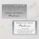 Ce carte de visite chic, girly et glam a des gouttes de parties scintillant gris brillant de part et d'autre. Personnalisez facilement ce carte de visite en ajoutant votre nom et vos coordonnées. Cliquez sur "customiser plus loin" pour modifier la couleur du texte et le style et la taille de la police. Ce carte de visite est parfait pour un maquilleur, un coiffeur, un technicien en ongles ou un propriétaire de salon.