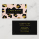 Si vous êtes une patronne de femme, ces impressionnants cartes de visite glamour modernes sont le moyen parfait pour donner une première impression mémorable à votre client. Carte de réseautage moderne, girly animalier, avec image numérique d'impression lépard en or rose vif, noir et parties scintillant. Superposition à bande noire. Idéal pour les professionnels de la beauté, de la mode, du divertissement et des événements. Idéal pour les salons de beauté, les spas, les cosmétiques, les esthéticiens, les studios de danse, les boutiques, les designers, les stylistes de cheveux et de mode ou tout autre professionnel de l'image.