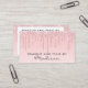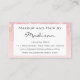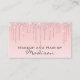 Ce carte de visite chic, girly et glam a des gouttes de parties scintillant rose rose rose rose pâle brillant des deux côtés. Personnalisez facilement ce carte de visite en ajoutant votre nom et vos coordonnées. Cliquez sur "customiser plus loin" pour modifier la couleur du texte et le style et la taille de la police. Ce carte de visite est parfait pour un maquilleur, un coiffeur, un technicien en ongles ou un propriétaire de salon.