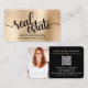 Carte De Visite Gold Black Real Estate Agent QR Code Photo Broker