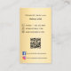 Un arrière - plan à l'allure d'or. Décoré d'un arc doré. Personnalisez et ajoutez vos nom, titre et coordonnées. Ajoutez votre URL/lien de site Web au code Qr. Avec des icônes Facebook et Instagram. Texte noir.
