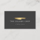Un couteau de chef doré accompagné de votre nom ou nom d'entreprise crée un logo accrocheur et professionnel sur ce design carte de visite moderne. Idéal pour les entreprises de restauration, les chefs, les restaurants, les cuisines, etc. © 1201AM CREATIVE