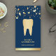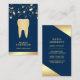 Carte de visite professionnel de chirurgien dentaire avec de beaux confettis d'étoiles dorées avec des accents faux feuille d'or sur un arrière - plan bleu marine. Ajoutez votre nom et vos coordonnées pour faire une première impression durable.