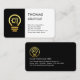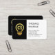 Overleaf, in a black cover brought over from the front, card details are on the left side. At the top is the gold lightbulb logo you can use followed by your prestigious name and the contact details.