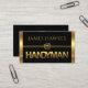 A black cover features a pair of faux gold layers that encapsulate the sides of the card. At the center is a gold home-handyman tools demarcation line with a gold "HANDYMAN" signage underneath. At the top of the card is your prestigious name.