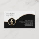 Ce carte de visite d'enseignant de musique présente des segments noirs et blancs séparés par une bande d'or ondulée. Une élégante icône en or d'une clé triable se trouve sur le côté inférieur gauche du design, qui est généralement adapté aux entreprises ou professions liées à la musique, basse, bassiste, bassiste guitariste, musicien, groupe, divertissement, thèmes rock.