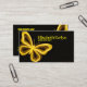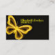 This stunning 16:9 artwork showcases a line-art butterfly positioned on the left (38% of the frame), with a solid black background filling the right (60-62%). The butterfly is rendered in glowing neon yellow-gold – bright bold lines define its shape, while softer dimmer gold lines add intricate detail – creating a luxurious, eye-catching effect. The high-contrast composition brings a premium modern touch, making it ideal for business cards that convey elegance and innovation.