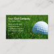 Cartes de visite de golf simple avec une photo d'arrière - plan graphique closeup d'une balle de golf dans l'herbe et agencement organisé vous pouvez customiser en ligne pour l'industrie du golf incluant mais pas limité à des cours de golf, classe, fournitures, site Web, ou promotion.