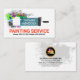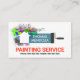 La couverture présente une silhouette de maison à l'intérieur d'un mur de graffiti coloré en plaque de peinture. Le mur est sur le point d'être peint par une brosse à rouleaux. A l'intérieur de la bande de peinture bleue se trouve votre nom prestigieux. Près de la base de la carte se trouve le nom de l'entreprise ainsi que ses coordonnées. Au-dessus de la feuille, une plaque de peinture apparaît au centre d'une couverture blanche. En haut est un logo doré "bande de peinture de ventilateur maison" que vous pouvez utiliser. Ceci est suivi par le nom commercial, les coordonnées et une option de légende de slogan pour faire connaître vos services. Une grande carte pour la peinture, l'amélioration de la maison et les travaux de construction.