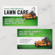 Clear professional cover with grass cut lawn and zero turn mower. Space for services list. Perfect for yard services, lawn care professionals, landscaping company, gardeners.