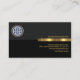 Au-dessus, le même thème de design est utilisé avec le logo au coin supérieur et le nom commercial juste au-dessus de la bande dorée. La colonne noire située en dessous contient vos coordonnées et votre slogan pour faire connaître vos services.