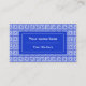 Carte de visite élégante, élégante et sophistiquée avec carré grec méandre motif de clé en bleu et blanc. Design moderne et tendance, parfait pour les amoureux de la Méditerranée.