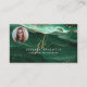 Carte de visite moderne et élégant avec agate verte et marbre avec veines de parties scintillant en faux or et accents pétillants personnalisés avec des initiales manuscrites fantaisie avec des swashes et nom et votre photo. ASSISTANCE : Pour obtenir de l'aide sur la modification ou la personnalisation de la conception ou pour coordonner des éléments, contactez le concepteur AVANT LA COMMANDE via l'onglet MESSAGE Conversation Zazzle ou envoyez un courriel à makeitaboutyoustore@gmail.com.