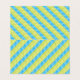 Symmetrical grid of crumpled paper textures in alternating greenish-yellow and light blue, creating a vibrant, tactile striped pattern with depth and visual rhythm
