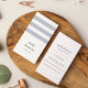Moderne et chic design carte de visite dans un format vertical unique, il présente trois bandes bleu-gris en ardoise sur un arrière - plan blanc, avec votre nom et nom d'entreprise ou titre dans un mélange attrayant de caractères casquette et de serif en minuscules. Ajoutez vos coordonnées complètes à l'arrière en lettres bleues au charbon de bois foncé. Convient à toute profession; exemple pour les professions designs d'intérieur.