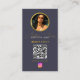 Un carte de visite bleu magnifiquement conçu qui comprend vos propres photos ainsi que votre nom, titre, code QR et poignée de médias sociaux. Parfait pour les influenceurs des médias sociaux. Customisez simplement et faites-le vous-même !