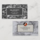 Caractéristiques de conception un mur en pierre abstrait comme couverture d'arrière - plan. Dans la section médiane de la carte, il y a un rectangle gris qui loge toute votre information de carte. Cette colonne est encapsulée par une frontière blanche qui accentue la conception. Vous faites énumérer votre nom, fonction et détails de contact. Se déplaçant plus d'au dos, à un arrière-plan de marbre gris élégant, vous avez le logo au dessus du rectangle. Si vous choisissez de télécharger une photo, les dimensions sont le pix 1.000 x 1.000. Ceci est suivi des détails d'affaires et d'une option pour écrire votre slogan-tagline. Une grande carte simple pour les entrepreneurs généraux.