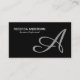 Carte De Visite Gris de script monogramme | Arrière - plan noir