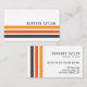 Carte De Visite Gris moderne et rayures rétro orangées blanc éléga