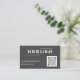 Carte de visite noir simple et professionnel à personnaliser avec vos coordonnées et code QR. Ajoutez votre code QR pour diriger votre clientèle potentielle ou fidèle vers votre lien Web souhaité. Téléchargez votre logo et modifiez le texte pour répondre à vos besoins.