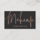 Un carte de visite moderne et élégant élégant de maquilleur avec la typographie simple moderne élégante de style de lettrage de main en or rose sur un backgound de fgrey. tout le texte est personnalisable, ajoutent vos médias sociaux.