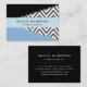 Elégante, élégante et raffinée, carte de visite avec motif en zigzag (chevron) en gris et blanc avec des touches de couleur bleue et noire. Design moderne et tendance, parfait pour les amateurs de zigzag.