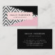 Elégant, élégant et sophistiqué, carte de visite avec motif en zigzag (chevron) en gris et blanc avec des touches de couleur rose et noire. Design moderne et tendance, parfait pour les amateurs de zigzag.