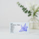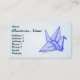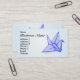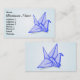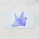 Une grue en papier bleu origami. Un carte de visite à l'allure intelligente pour un magasin d'artisanat ou une personne astucieuse.
