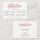 Cake Care Card avec arrière - plan couleur rose féminine et élégante police de caractères moderne. Ce modèle de carte de guide pour gâteaux d'esthétique rose comprend les instructions les plus importantes pour le soin des gâteaux afin que vos clients savent mieux transporter, stocker et servir un gâteau. Le gâteau parfait merci carte de visite pour vos boîtes à gâteaux.