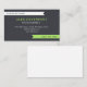 Carte de visite à un côté gris foncé avec un look simple et professionnel avec votre nom d'entreprise et numéro de téléphone sur des formes de menthe guidon s'étendant à travers le carte de visite en blanc et vert inchworm. Carte de visite professionnel et pratique pour toute profession avec des détails en blanc et vert vif et le dos blanc afin que vous puissiez écrire les choses à la main à des clients potentiels, des clients et des partenaires d'affaires. Carte de visite pratique en métal gris et vert citron avec votre nom et coordonnées au centre, sans logo, sans photo.