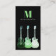 Guitares semi acoustiques en cool pop art psychédélique vert sur un arrière - plan noir avec monogramme personnalisé, nom, détails et code QR. Le design carte de visite simple parfait pour guitaristes, musiciens professionnels, artistes et professeurs de musique. OEuvre originale de l'artiste Catherine Sweetman