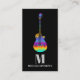 Guitare électrique semi acoustique colorée aux couleurs vives psychédéliques funtes, un design carte de visite professionnel musiciens cool avec initiale monogramme personnalisée, nom et coordonnées en utilisant le modèle facile à utiliser. N'importe quel guitariste ou musicien vous dira que vous ne pouvez jamais avoir trop de guitares. Cette guitare ludique et colorée célèbre l'énergie et la variété de ce merveilleux instrument musical. Le design parfait pour guitaristes, musiciens et mélomanes. Design original unique par l'artiste Catherine Sweetman