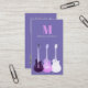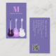 Guitares semi acoustiques en cool pop art rose et violet sur un arrière - plan violet avec monogramme personnalisé, nom, détails et code QR. Le design carte de visite simple parfait pour guitaristes, musiciens professionnels, artistes et professeurs de musique. OEuvre originale de l'artiste Catherine Sweetman