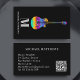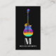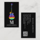 Site d'enseignant de musique guitare qr code carte de visite noir avec monogramme et guitare électrique colorée. Une guitare couleur aquarelle aux couleurs vives de l'arc-en-ciel sur un arrière - plan noir avec nom monographique personnalisé et code QR. Ajoutez vos propres détails en utilisant le modèle pour créer un carte de visite professionnel. Le design parfait pour guitaristes, musiciens et professeurs de musique. Oeuvre originale unique et typographie par l'artiste Catherine Sweetman